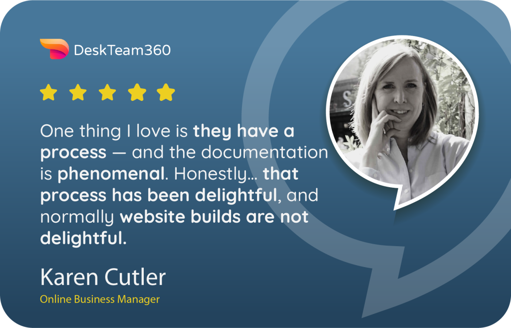 Karen began working with Desk Team 360 in 2022 after learning about them through a referral from Duct Tape Marketing. Prior to managing her own business, she worked on the agency side where she managed deliverables and supported client bases, which gave her initial experience with Desk Team 360’s services.